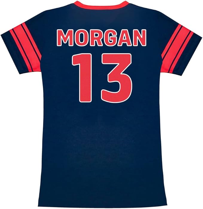 Icon Sports Officially Licensed U.S. Soccer 4 Star USWNT Girls Game Day Tee, Youth Soccer Shirt & Gear- Alex Morgan 13 Navy/Red