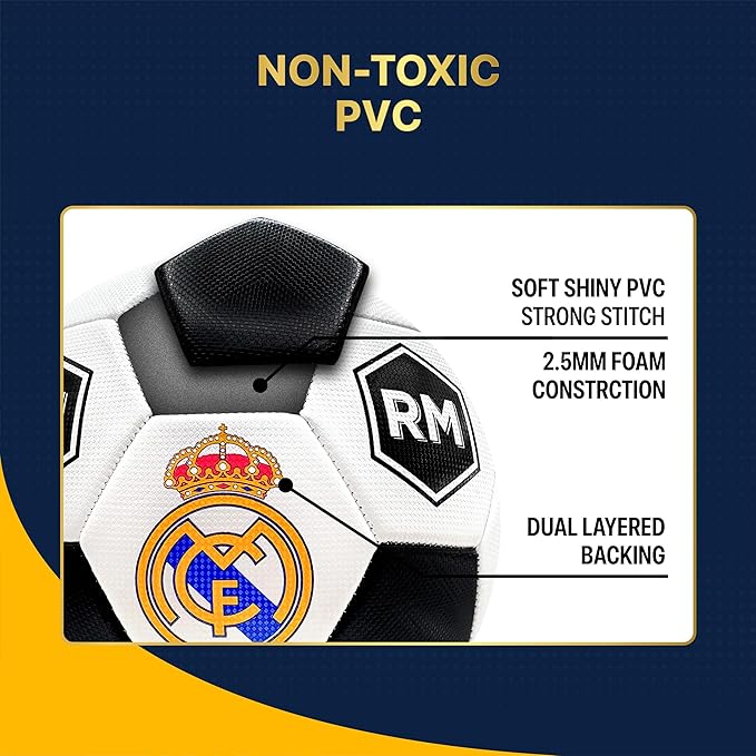 2025 Real Madrid Soccer Ball Officially Licensed Player Ball Size 5 (Shiny Fabric) RMCF White