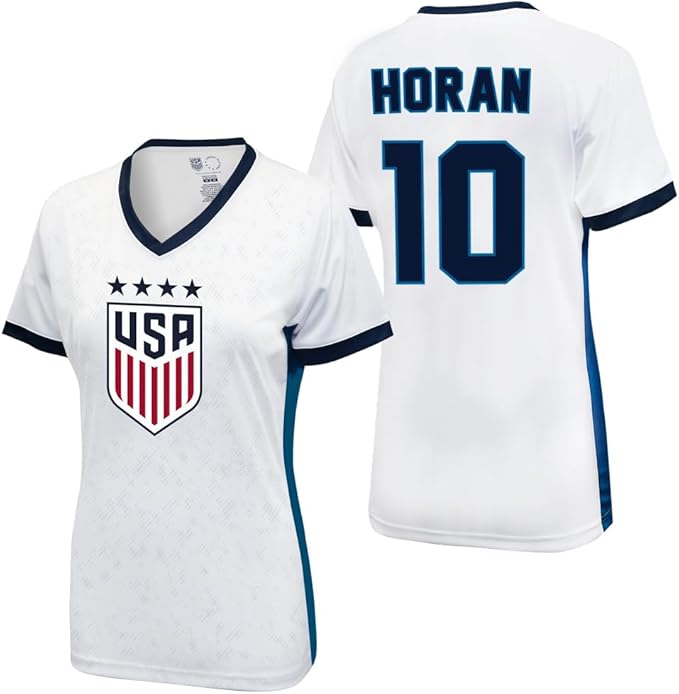 Icon Sports Official Licensed U.S. Soccer 4 Star USWNT Players Woman's Game Day Shirts Football Tee Top - Lindsey Horan 10 Blue