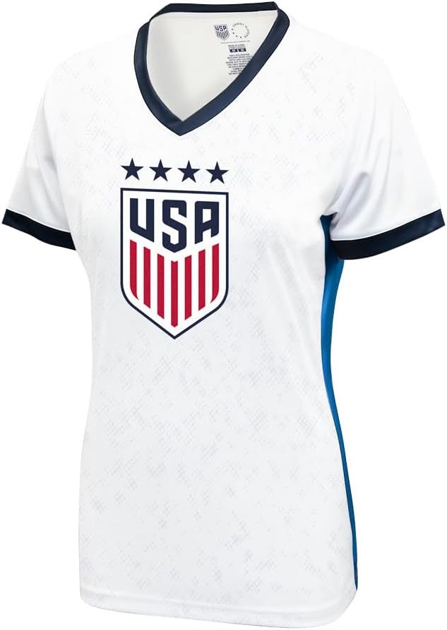 Celebrate the USWNT's dominance with this Women's Game Day Shirt. Featuring the USWNT crest over a sublimated pattern, player's name and number on the back, a v-neckline, and short sleeves, this on-field-inspired shirt is the perfect top to wear whether you are watching the greatest soccer team in the world play or just want to flaunt your love for the world champs!