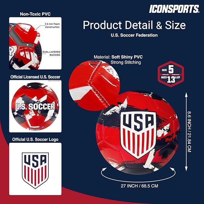 Official Licensed U.S. Soccer Product – Support your team with this authentic, regulation-size U.S. Soccer Federation soccer ball.