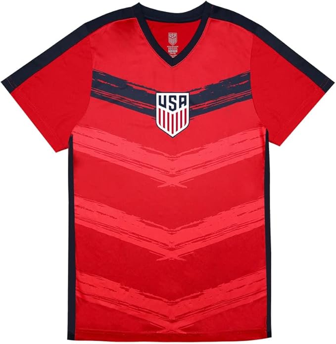 Icon Sports Official Licensed US Soccer USMNT Youth Kids Game Day Shirts Athletic Active Training Game Tee Top- Crossover Red