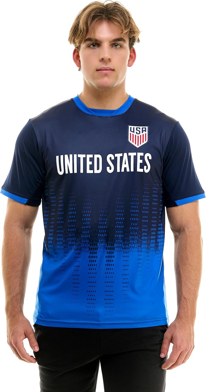 Icon Sports U.S. Soccer Federation USMNT Adult Game Day Soccer Poly Shirt T-Shirt- Frequency Navy