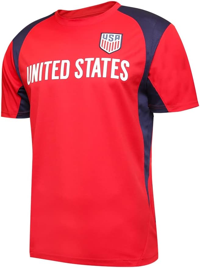 Icon Sports U.S. Soccer Federation USMNT Adult Game Day Soccer Poly Shirt T-Shirt- Highlight Red